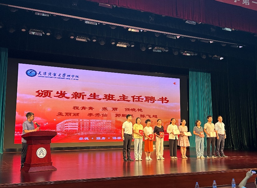 会上,学院领导为新生班主任颁发聘书。班主任代表、统计系张丽老师分享体会,并对同学们的大学生活提出期望:希望同学们时刻践行社会主义核心价值观;保持求知欲,坚持学习,勇于尝试,不怕失败;保持身心健康、不断增强自我认同感和幸福获得感。
