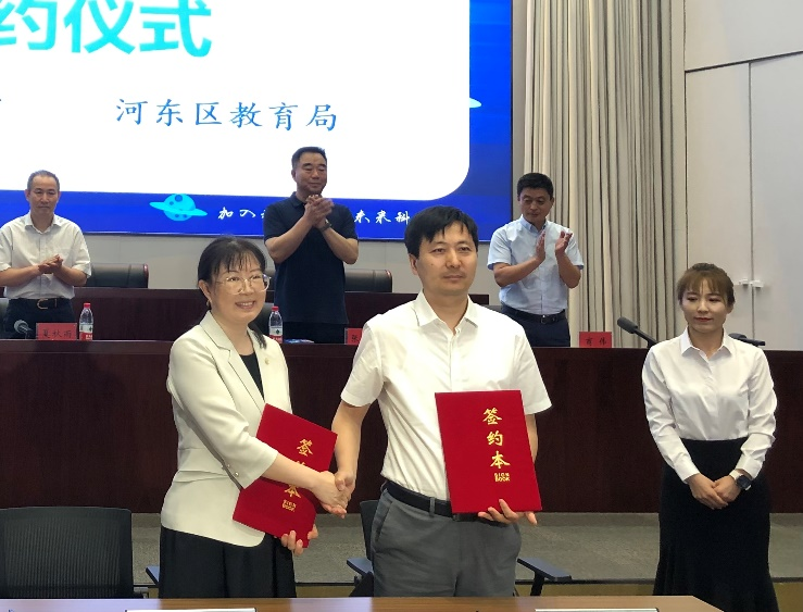 5月27日上午,河东区教育局、区科协、区委宣传部共同举办河东区第38届科技周主场活动,正式启动了“共筑科学梦想:加入我们,共育未来科学家”项目。天津市科普思政研究会秘书长周严出席此次活动,并代表研究会与河东区教育局签订了共建协议。根据协议,双方将在基地建设、人才培养、教育活动共组、协同育人、思政活动合作等方面展开深入合作,共同推动优质教育资源的建设与发展。