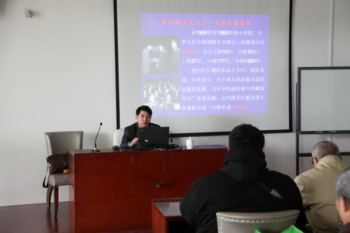 10月22日上午,beat365官网马克思主义学院齐霁教授应“文博讲堂”之邀,为系列专题讲座之二开讲。他用大量的数据、生动的事例为观众讲述《开国将军与红军长征》。他讲到,红军长征的胜利,保存了党和红军的基干力量,这是党和红军的精华,是中华民族的支柱,他们很多人以后成了治军的骨干。从1955年至1965年的十年间,中华人民共和国授予少将以上的将军共计1614位,他们在长期的革命斗争中,南征北战,英勇奋斗,被全国人民尊称为开国将帅。他们中的1092人参加过长征,占开国将军总数的68%。齐教授用一组组数据讲述长征路上那些鲜为人知的事情,如开国将军中有四人是在红军长征中因伤致残、参加过红军长征的唯一女将军、参加过红军长征的唯一回乡当农民的将军、参加过红军长征的唯一外国籍将军、参加过红军长征的少数民族将军等。透过他的生动讲述,大家对红军长征有了更为全面的认识,一起回望了这次人类精神和意志的伟大远征。