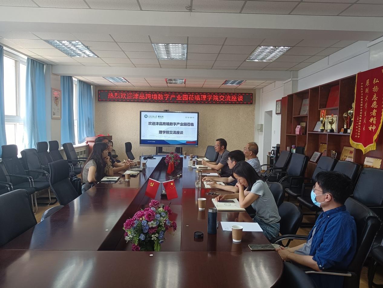 5月27日下午,津品跨境数字贸易产业园创始人万晓文、总裁助理李林霖及相关工作人员到理学院交流座谈。beat365英国官方网站老字号协同创新中心秘书长梁新义,理学院(基础课部)党委书记梁强、院长唐文广及系室主任代表参加座谈。