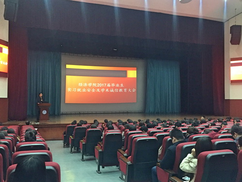 为进一步加强毕业生实习教学管理和就业安全意识、规范毕业论文写作、增强学术道德诚信,11 月9日,经济学院在科学会堂召开2017 届全体毕生会议。学院党委副书记张玉娟、副院长梁学平、教务办公室主任边士洪以及全体辅导员参加了会议。