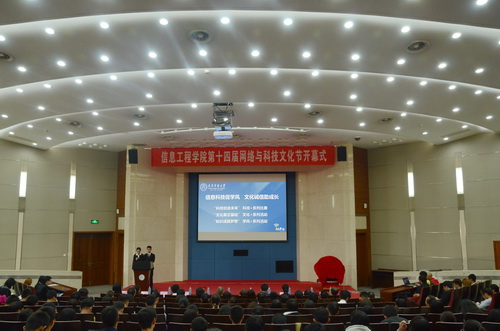 10月17日下午,信息工程学院第十四届网络与科技文化节开幕式在图书馆三楼国际报告厅举行。出席开幕式的嘉宾有天津市河东区图书馆馆长吴方,天津市河东区文化和旅游局团委书记陈贵军,学院党委书记王艳军,院长潘旭华,党委副书记孙玉珍及相关负责老师、学院学生干部和300余名学生代表参加。