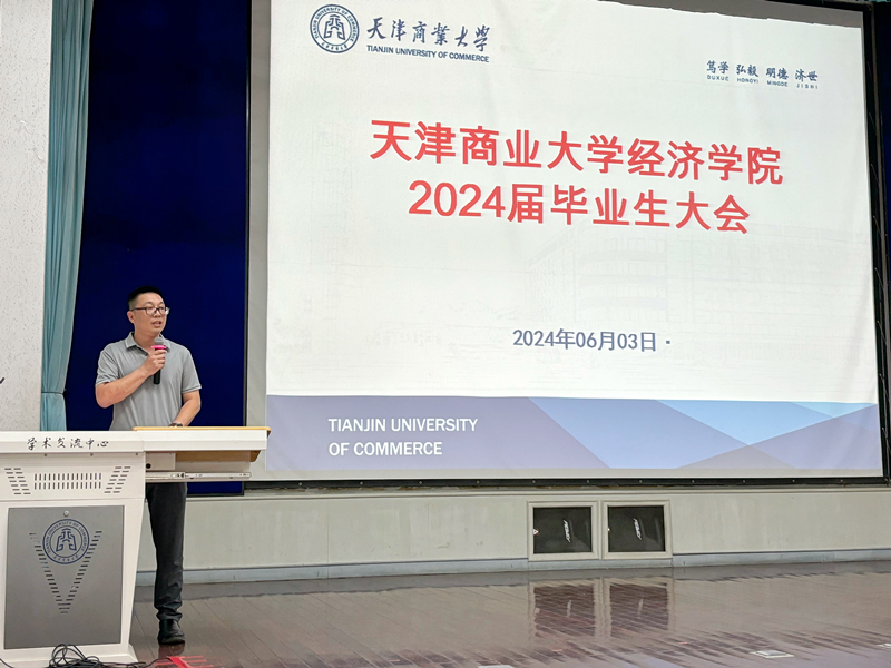赵立彬首先代表学院向顺利完成学业的2024届毕业生表示祝贺,并对他们四年来的辛勤付出和取得的优异成绩给予了高度评价。他指出,毕业生们作为学院的骄傲,要时刻保持对经济学科的热爱和执着,将所学知识运用到实际工作中,为国家的经济建设和社会发展做出自己的贡献。同时他强调,毕业季同学们要加强在防火防盗、人身安全、网络安全等方面的安全防范意识,自觉遵守校纪校规,办理好各项离校手续,文明离校、安全离校。