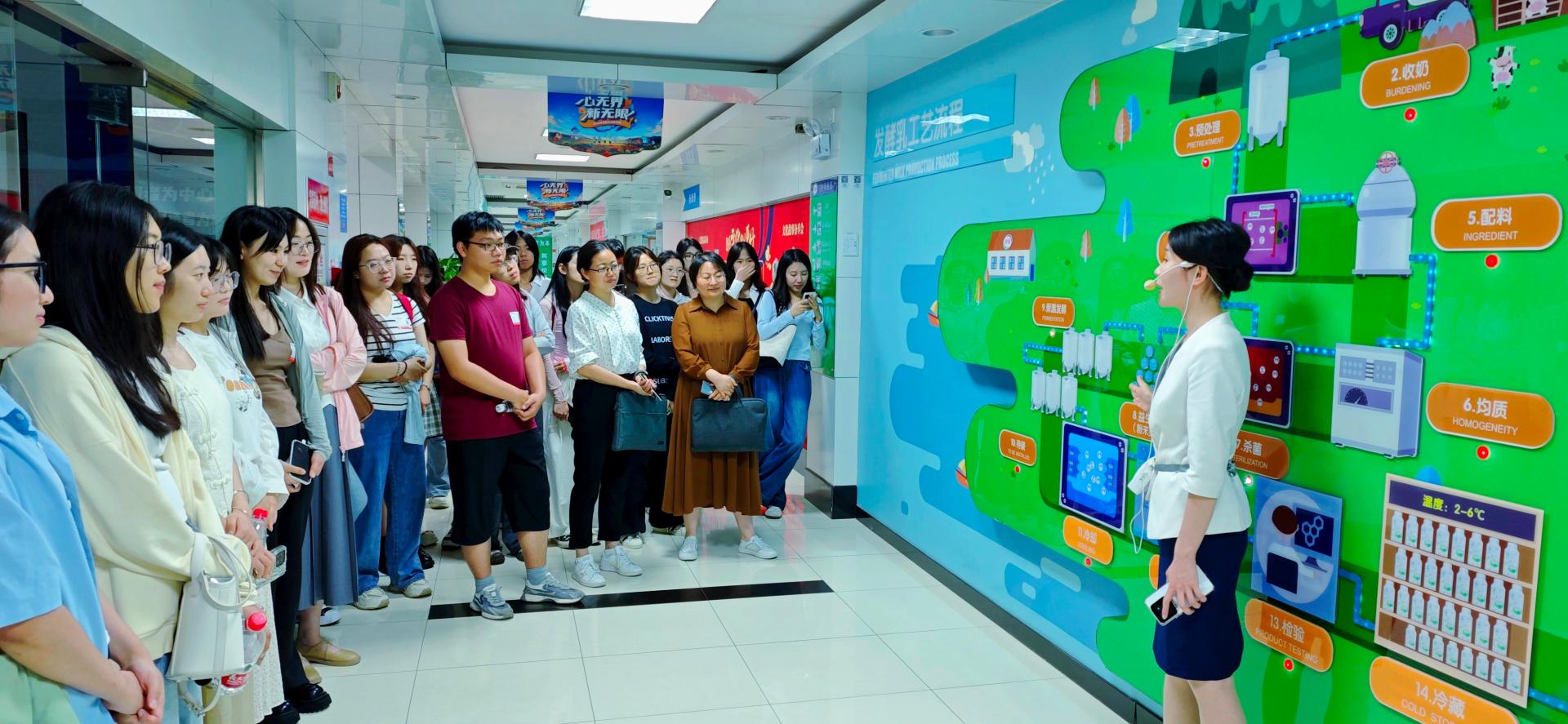 天津伊利乳品有限责任公司是伊利集团在北方最大的低温乳品生产加工基地。在讲解员的带领下,师生参观了现代化智能化生产线,丰富了对酸奶的生产、保存、营养价值的相关知识,亲身感受了新科技的独特魅力。参观结束后,企业人力资源部门为师生进行了企业宣讲及招聘岗位介绍。