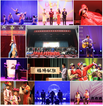 12 月23 日晚,艺术学院在科学会堂举办首届艺术文化节闭幕式晚会。艺术学院院长王其华、党总支书记杨震、党总支原书记郑志明、党总支副书记梁强、艺术研究所副所长柳春水、艺术管理系主任王俊琪、团委书记翟慧敏及部分教师代表出席,近千名学生现场观看晚会。