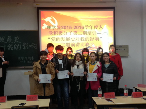 入党积极分子培训活动以开展思想汇报培训会、主题演讲比赛、观看视频、交流研讨会四个环节进行。此次演讲比赛是 2015-2016 学年度入党积极分子培训活动的本年度最后一期。下学期将继续进行交流研讨,加深入党积极分子对党的认识和理解,明确新时期党员标准和肩负的历史使命,端正入党动机,从思想和行动上都积极向党组织靠拢。