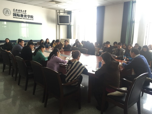 11 月 25 日 下午,国际教育学院在学院会议室召开学习贯彻党的十八届五中全会精神会议。会议由学院党总支副书记方雷主持,院长乔秀梅、教工党员和学生党员共 40 余人参加会议。