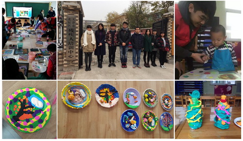 天津市北辰区特殊教育学校创建于1993 年,是一所为北辰区智障、自闭症、脑瘫、多重残疾学生等残障儿童少年提供从学前到职业教育的特殊教育学校。艺术学院青年志愿者协会的同学们经过特殊教育学校老师的统一培训后,利用自身的美术特长,每周六为自闭症儿童开设美术治疗班。自闭症儿童没有依恋行为,不理人,不会主动找人玩,语言沟通有障碍,咬字不清,有些机构把他们称为“外星球孩子”。艺术学院的志愿者们耐心地和自闭症儿童们一起画画,做手工,尝试用自己的专业和孩子们在艺术的世界里交流,共同制作出了多种多样的美术作品。公益活动得到了北辰特殊教育学校的老师和自闭症儿童家长的一致认可。
