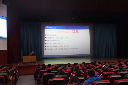10 月13 日下午,机械工程学院在科学会堂举办2016 届毕业生就业指导讲座。机械工程学院辅导员王凯主讲。全体 2016 届本科及研究生 400 余人到场听取讲座。
