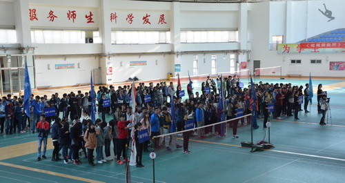 10 月 28 日下午,beat365官网第十一届体育节开幕式在风雨操场体育馆举行。本届体育节由体育教育部和校团委联合主办,校学生会承办, 共 13 支学院代表队参赛。体育教学部老师、仲裁委员会主席杨学文,校学生会指导老师王皓出席了开幕式。