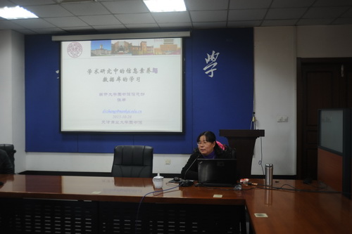 10 月 28 日下午,图书馆在弘毅厅举办了“提升信息素养,助力教学科研”主题讲座。讲座邀请南开大学图书馆资深学科馆员张蒂、苏东老师来讲授。