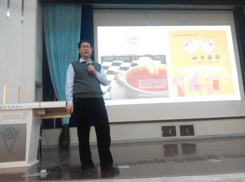 开幕式之后,王兆军作了以《大数据与统计》为题的学术讲座。他以国家启动“大数据发展研究计划”、马云运用大数据取得成功等例子,说明了统计学的重要性;以科普读物《女士品茶》为切入点引出了“大数据面临机遇和挑战 ” 的观点,说明解读大数据是当下的社会任务,利用大数据是市场商机;王兆军又从大数据对传统形式的挑战、认识论上的困惑、方法论上的冲击这三方面解读了大数据面临的挑战,并从不同层次说明了统计在农林牧渔业、军事及航空航天、医药卫生等不同方面的应用,指出了统计的重要性以及研究统计学的必要性。