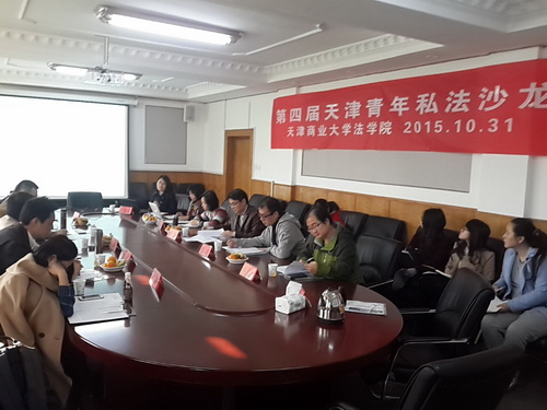 10 月31 日,第四届天津青年私法沙龙在法学院举行。法学院沃耘博士、王立争博士、张涛博士与来自南开大学法学院、天津师范大学法学院、天津财经大学法学院、天津大学法学院、中国民航大学法学院、天津医科大学人文学院等高校的青年博士参加了沙龙 , 法学院 14 级民商法、经济法专业研究生旁听了本次会议。
