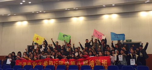 11 月 7 日,知行团校第八期培训班开展了第二课——素质拓展训练营, 75 名学员参加活动。今年,校团委首次聘请了专业的素质拓展公司,借助专业力量,提高团校培训质量。