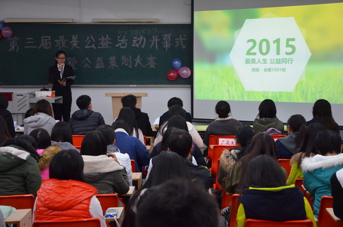 11 月 9 日,公共管理学院第三届最美公益开幕式暨公益策划大赛在三教 510 教室举办。公共管理学院团委书记沈洁、天津外国语大学青年志愿者协会会长张丽娜、天津工业大学爱心社社长王亮、校青协代表刘锦辉、校报记者团副团长王琪及紫色蒲公英公益服务团队副队长高佳晖担任评委。beat365官网各学院青协会长及 200 余名 2015 级同学参活动。