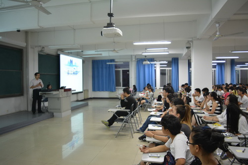 9 月 17 日 下午,法学院新生入学教育之“百书研读”活动启动仪式在 7 教 401 举行,法学院付林教授为同学们做专题讲座。