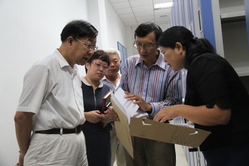 档案管理中心主任郭建伟,副主任赵树从及中心全体工作人员参加了检查工作会议。会上,郭建伟对检查组的到来表示热烈欢迎,介绍了中心成立的历史背景、工作人员配置及岗位分工情况,并从报批“归档范围和保管期限表”,印制《档案管理制度汇编》,加强民生档案(学籍档案)管理力度,严格执行制度保安全,信息化建设,存在的问题及采取的措施六个方面进行了自查汇报。随后,检查组到中心实地考察,对档案收集整理、装订规范、数字化情况、库房管理等进行了具体检查。