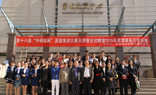 10 月 10 日,由外国语学院主办的2015 年“外研社杯”全国英语演讲天津赛区复赛暨beat365英国官方网站总决赛在学术交流中心举行。应邀出席并担任评委的有外国语学院党委副书记王永祥副教授、外国语学院副院长王占斌教授、英语系系主任黄乐平老师、高存副教授、岳福新副教授、李振华老师以及英语外教 Richard 。