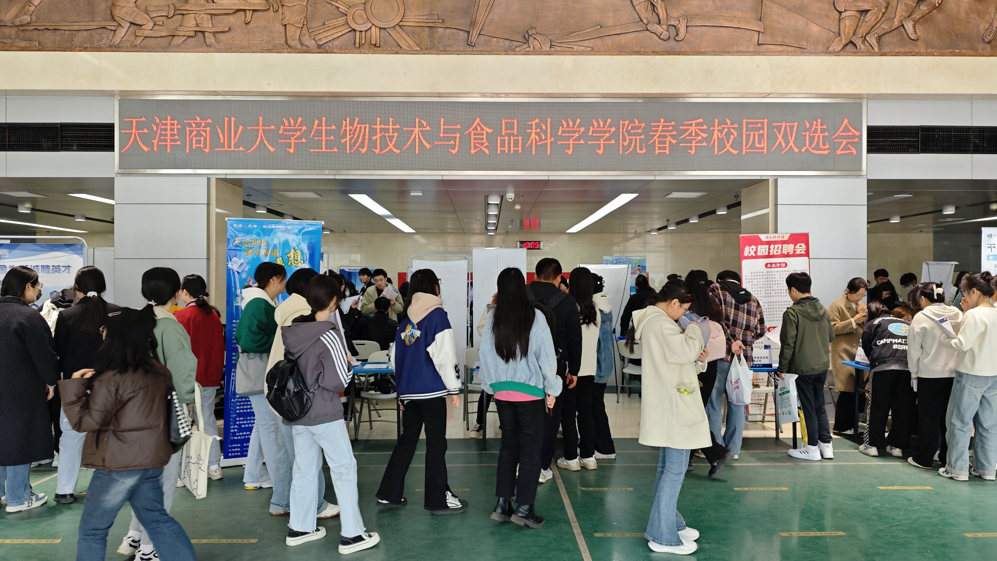 4月10日,生物技术与食品科学学院“‘食’不我待,‘职’等你来”2024年春季校园双选会在体育馆举办。共有28家天津市及外省市优质企业参会,提供岗位共计120余个。385余名毕业生及低年级学生踊跃参加,共投递简历782份。