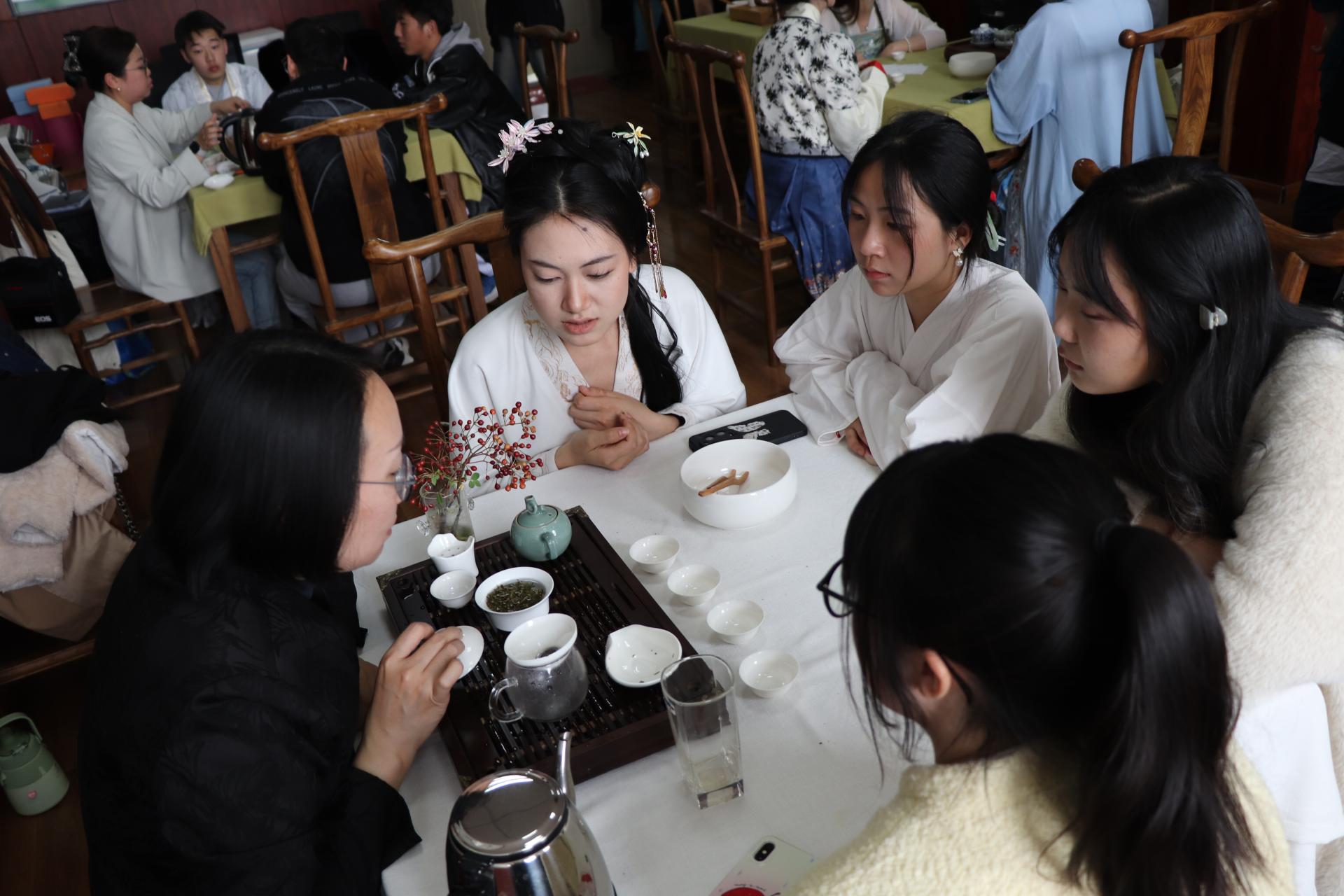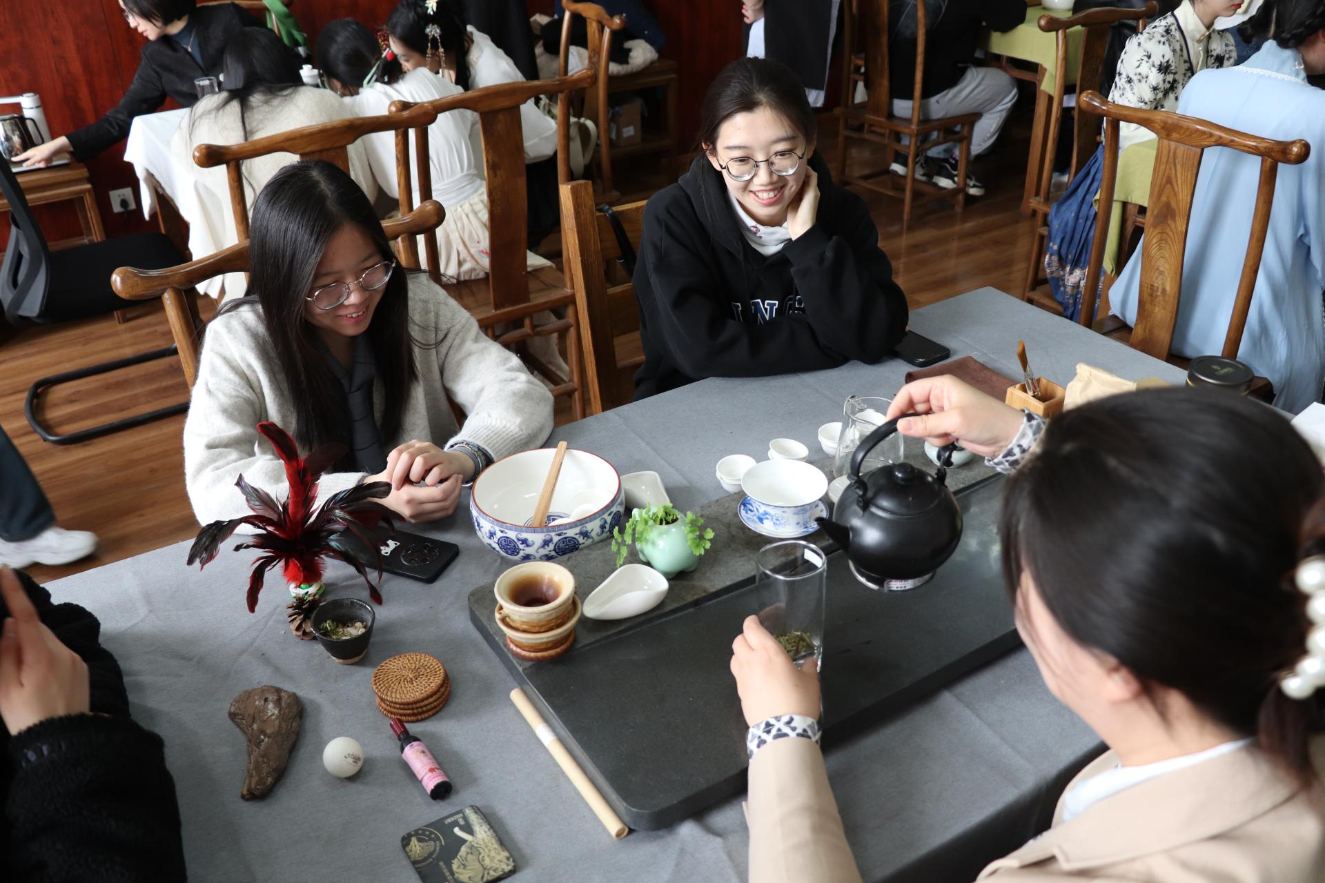 本次活动邀请机械工程学院原党委书记、退休教师张建东为现场师生系统介绍中国六大茶类的发展历史、特点特性及泡发方式,畅谈茶文化与中国经济社会发展密不可分的联系。茶协会的老师为同学们现场展示茶艺,将每道工序一一呈现;同学们静心观赏、积极实践,在沏茶、赏茶、闻茶、饮茶的过程中,修身养性、学习礼法,在学茶、品茶、论茶的过程中,领略中国茶文化的无穷魅力。