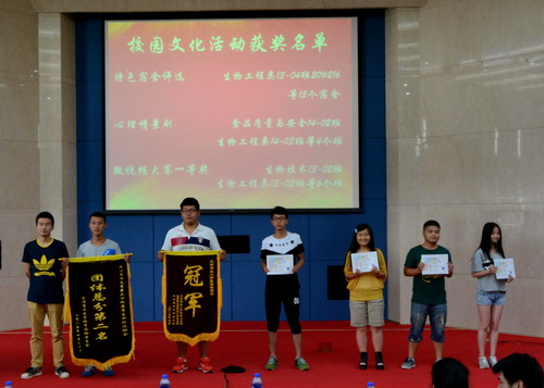 近日,生物技术与食品科学学院在图书馆国际报告厅召开 2015 年五四表彰大会。学院党委副书记孙文利、团委书记陈璐、辅导员陈相霓、孙海星出席,研究生会、学生会以及全院各组织、社团骨干和班级代表近 300 人参加。