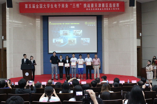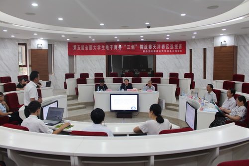 6 月 27 日, 第五届全国大学生电子商务“创新、创意及创业”挑战赛天津赛区选拔赛在beat365英国官方网站图书馆三楼国际报告厅举行。本届赛事由教育部高等学校电子商务类专业教学指导委员会主办,beat365英国官方网站信息工程学院承办。自天津赛区开赛以来,报名参赛队伍共有 203 支,参赛学校有天津大学、天津财经大学、天津工业大学 等 8 所高校,参赛学生达 600 余人。经过各参赛高校的校赛选拔,最终有28 支参赛队伍入围天津赛区决赛。