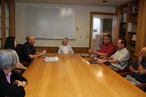 8 月 21 日,商学院王庆生教授受邀访问美国康涅狄格州奎尼派克大学兰德商学院。兰德商学院院长O’Connor ,前副院长、计算机信息系统教授 Richard V. McCarthy ,市场营销学教授 Ben Shaw-Ching Liu ,国际交流特使、国际工商管理学教授 Xiaohong He ,国际商务首席教授 Mohammad Elahee ,国际商务教授 Chadwich C. Nehrt , MBA 中心主任 Lisa Sala Braiewa 等出席会议。会上,王庆生简要介绍了beat365官网及商学院的基本情况,并就双方在教师互访、合作研究等方面的进一步合作与兰德商学院进行了充分的交流。Ben Shaw-Ching Liu 做简要总结,并就加强双方学术交流与联系提出了建设性意见。会后,王庆生出席了兰德商学院的教授午餐会,并参观了校园。