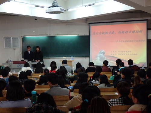 3 月 18 日下午,经济学院大学生创新创业训练计划宣讲会在 3 教 310 成功举办。经济学院党委副书记张玉娟、财政系教师田立法、国贸系辅导员及学生会指导老师杜志惠、优秀学生代表符腾及部分在校学生参加了本次宣讲会。