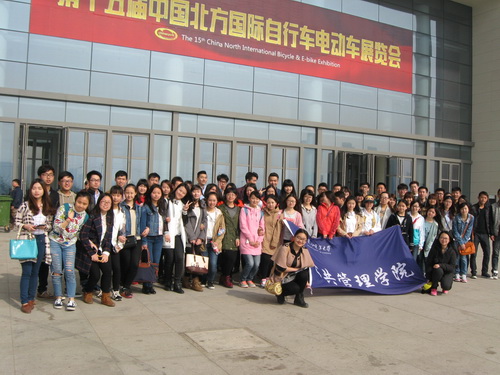 3 月 28 日,公共管理学院组织卓越会展师实验班 1301 班、 1401 班 70 余名学生到梅江会展中心开展认识实习和专业实习,参观了天津梅江会展中心一期和二期的展馆,并集中观摩了第十五届中国北方国际自行车电动车展览会。会展经济与管理系主任姜仁良、党支部书记赵伯艳参加了参观实习,