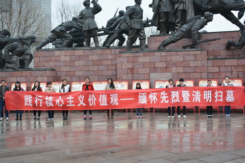 4 月 3 日,校社研会成员以及各学院社研会成员参加了集体扫墓活动。在平津战役纪念馆,在讲解员的解说下,同学们参观了图文资料和物品陈列,了解了平津战役的历史。
