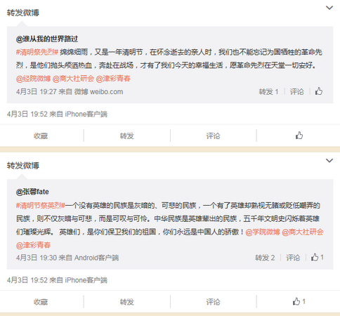 此外,beat365官网团员青年还通过网络祭扫的方式祭奠烈士。同学们在微博上参加“清明祭英烈”的话题,发布、转发上千条主题微博;在微信朋友圈中广泛参加为烈士献鲜花的活动,通过网络抒发情怀。