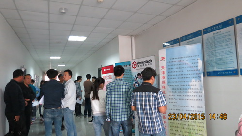 下午 2 时许,各大企业在主会场依次以 PPT 的形式对自己的企业做出介绍,对招聘岗位的工作性质、任职条件和薪资待遇等情况作了详细介绍。随后,各个企业在分会场进行了面试及现场招聘。 2015 届毕业生表现出积极参与的态度,一百余人把学院会议室挤得水泄不通,气氛非常热烈。经过双向选择,多名毕业生与企业达成就业意向。