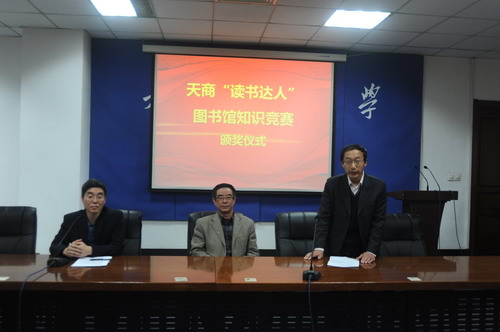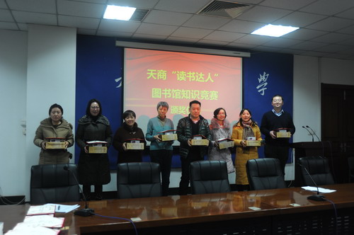 本次颁奖活动是图书馆开展的第九届“ 资源与服务” 宣传月的收尾活动,目的是 在全校范围内大力宣传图书馆的图书和数据库资源,提高资源有效利用率,从而更好地服务学校的教学和科研工作。同时,大力推动大学生阅读推广活动,倡导和营造天商读书风气,好读书、多读书、读好书,为创建“书香校园、人文校园”做出积极努力, 助飞天商学子的成才梦。活动开展以来, 我们共举办了 7 场数据库培训讲座和 4 场读书推广活动,并且举办了评选“读书达人”和图书馆知识有奖竞赛活动。 通过开展这些形式多样、内容丰富的读书会和 数据库培训 活动,使更多的学生感受和认识到阅读的价值,激发起读书的兴趣,并且对图书馆宝贵的数据库资源有了更深的了解和利用,从而促进他们的个人成长和成才。