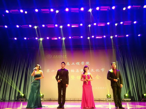 本届网络与科技文化节闭幕晚会共分为三个板块。第一模块为红梦天商,其中包括: “ 我为社会主义核心价值观代言 ” 作品征集活动,以 “ 聚焦津彩微生活,弘扬核心价值观 ” 为主题的微博文、微视频比赛等系列活动 ,“LOGO 与吉祥物设计大赛 ”, 以及 “ 国学 APP 手机软件设计大赛 ” 。第二模块为蓝天角逐,包括了:大学生电子商务 “ 创新、创意、创业 ” 挑战赛, 2014 年 “ 挑战杯 ” 大学生课外学术科技作品竞赛,学院 “ 电子商务实战技能大赛 ” , “ 世贸城项目移动 APP 功能模块设计大赛 ” 以及 “ 电子海报设计大赛 ” 。最后一个模块为绿遍生活,其中包括: “ 第二届走下网络、走出宿舍、走向操场 ” 素质拓展活动,百度营销大学校企合作项目,以及以 “ 时代创新科技为基,网络交流诚信为本 ” 为主题的大型横幅签名宣传活动,均受到广大同学的一致好评。