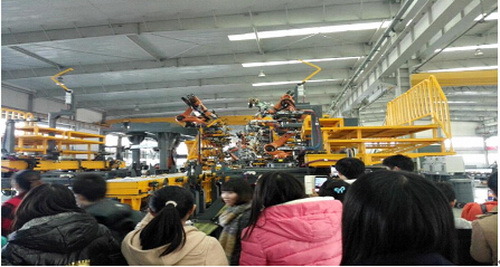 机械设计制造及其自动化学生在天津福臻工业装备有限公司参观了公司先进的生产线 ,了解了公司与各大著名汽车厂商的合作项目。公司为学生重点讲解了拥有不同自由度机器人在汽车生产线上的运用,并且鼓励前来参观的同学们好好学习机械知识,争取以后能为国家突破一些难题,为行业多做一点贡献。同学们还参观了两个车间,首次见到用于生产的机器人以及车床,工程师耐心的解答大家的疑问并叮嘱大一的同学好好学习工程制图等基础课程。