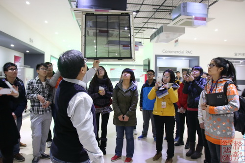 制冷系学生前往 LG电子(天津)电器有限公司参观 ,得到 LG 工作人员的热情接待。公司接待人员回顾了天津 LG 电子与天商制冷学会的多次合作经历,表示会将合作继续下去。同学们听取了产品、企业介绍,参观了公司展厅、装配车间和实验室,了解了包括 MULTI V WATER 、 ART COOL 、暗藏式风管机等在内的 LG 研发、生产的高科技产品,以及家用中央控制器等正在迅猛发展的产品。工作人员给学生们演示了部分产品的工作原理,使同学们将专业知识转化到实际应用有了更直观的认识,最后,公司向同学们介绍了招聘、发展前景等相关问题。