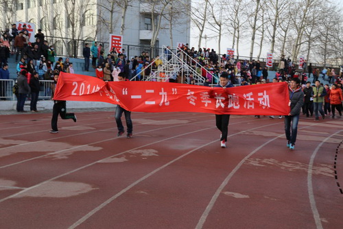 12 月10 日下午,由体卫部、校团委共同举办的阳光体育绿色公益暨纪念“一二九”冬季长跑活动开幕式在校田径场举行,校体卫部主任穆瑞杰、体卫部教师杨学文、校学生会秘书长王皓出席开幕式。