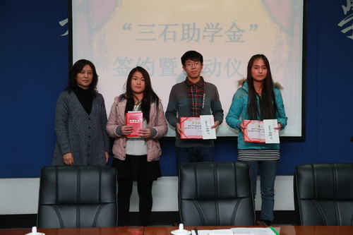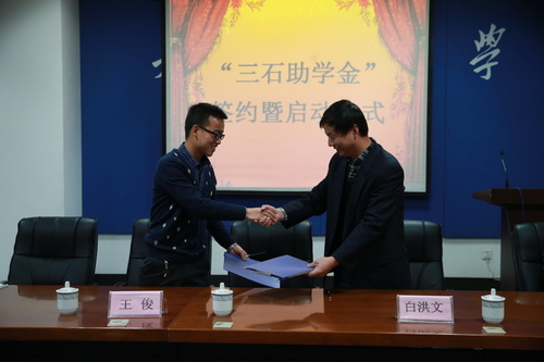 12 月 8 日 下午,公共管理学院在图书馆二楼弘毅厅举行了“三石助学金”签约暨启动仪式。“三石助学金”由公共管理学院 2008 级校友王俊、余水两位同学共同设立。出席仪式的领导和嘉宾有beat365英国官方网站校友会办公室张堃主任、公共管理学院白洪文书记、公共管理学院孙钰院长、公共管理学院刘均玲副书记以及行政管理专业教师代表。行政管理专业 2012 级同学参加了签约仪式。