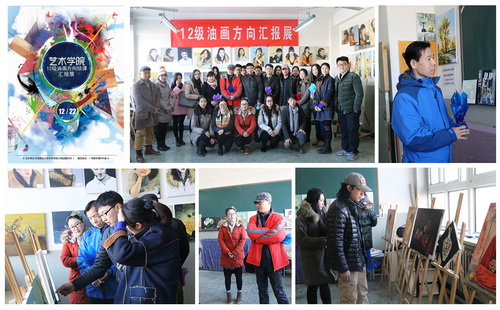 12 月22 日,艺术学院在一号教学楼 505 教室举办 2012 级绘画专业油画方向作品汇报展。艺术学院党总支书记郑志明,副书记梁强,艺术管理系主任王俊琪、专业教师范佳、梁健、辅导员翟慧敏、柳称,教学秘书吉静等出席活动并观看了展览。