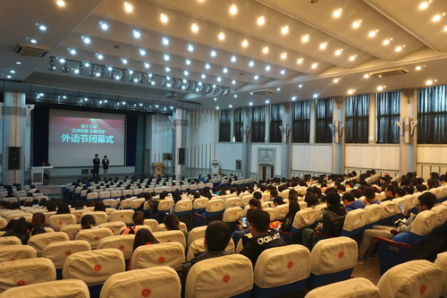 12 月17 日下午,外国语学院第十三届外语节闭幕式在学术交流中心举行,标志着历时一个月的外语节活动圆满结束。外国语学院副院长王永祥、党委副书记骆媛、团委书记马静、辅导员郭文雅应邀出席、各学生组织学生干部、全体 2014 级、 2013 级学生参加。