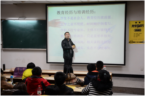 本次系列讲座分为两讲,主题分别为简历与职业规划讲座和面试全程应对技巧讲座,由商学院人力系副主任李耘涛老师主讲。在简历与职业规划讲座中,李老师为同学们系统讲解了简历制作技巧、职业规划的思路。在面试全程应对技巧讲座中,李老师从面试准备、面试进行、面试收尾三个阶段全方位向同学们展示了面试应该注意的问题。讲解过程中,李老师运用大量求职简历制作与面试回答实例,向到场同学全面剖析了择业求职时应具备的知识,并穿插了我问你答、简历点评、面试实测等互动环节,引起了大家极大兴趣,讲座在大家热烈的掌声中圆满结束。