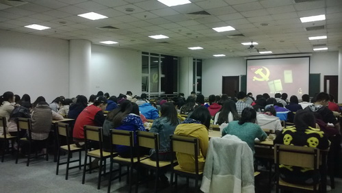 10 月23 日晚,国际教育学院直属党支部在FIU大楼 E 区204 、205 组织2014 级新生观看电视政论片《百年潮 中国梦》。支部全体学生党员、预备党员以及发展对象也到场观看。