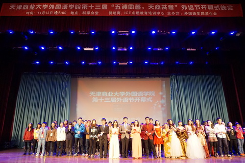 11 月 13 日 晚,以“五洲同磐 天商共音”为主题的外国语学院第十三届外语节开幕式晚会在科学会堂举办,标志着外国语学院一年一度的外语节系列活动正式拉开帷幕。外国语学院党委副书记骆媛,团委书记马静和学生辅导员郭文雅,学院教师,各学院学生组织代表应邀出席,数百名学子到场观看了本场晚会。