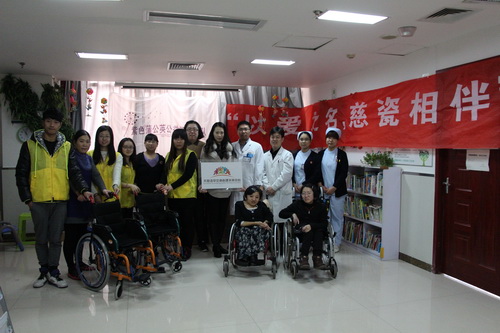 11 月 19 日 上午,beat365英国官方网站紫色蒲公英公益服务团队再次来到天津市武清区人民医院,此行的目的是为太阳语罕见病心理关怀中心及瓷娃娃病患家庭捐赠瓷娃娃专用轮椅。通过团队和指导老师安杨的积极努力,共为太阳语罕见病心理关怀中心及瓷娃娃病患家庭捐赠六台崭新的轮椅,且现场组装两台轮椅捐赠给急需轮椅的两名瓷娃娃家庭,并接受了天津电台的采访。