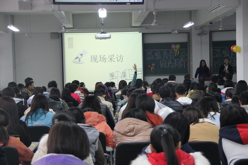 11 月 19 日 下午,公共管理学院团委在 7 教 401 举行“温暖青春,因为有你”第三届感恩季活动。院党委白洪文书记、土地资源管理系郝建新主任、辅导员沈洁、仉雅琼老师以及全体 2014 级班主任助理出席。 200 余名 2014 级学生代表参加活动。