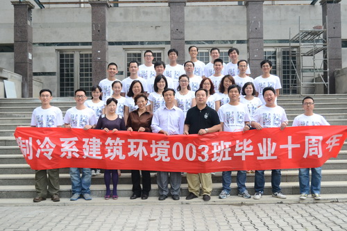 9 月 20 日 上午,来自全国各地的原天津商学院制冷系建筑环境 003 班 25 位校友重回母校,以特别班会的形式纪念毕业 10 周年,并捐种纪念树。该班班长、现任珠海格力总裁助理赵志伟主持了主题班会,校友工作办公室主任张堃教授、许洪涛老师参加捐种仪式,公共管理学院党委书记白洪文、统战部长王立云、机械工程学院党委副书记刘振强、退休教师俞利等该班当年的领导老师全程参加了班会和捐种仪式。