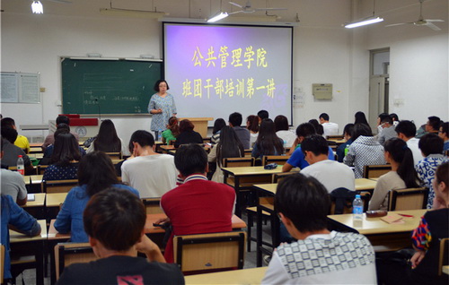 9 月 26 日 下午,公共管理学院 2014-2015 学年班团干部培训第一讲在 3 教举行。 12 、 13 、 14 级全体班团干部参加培训。培训旨在使各班班长、团支书进一步明确自身职责,熟练完成基本工作,从而推动各班的稳健发展。 培训内容为班团干部日常工作中的注意事项、班团干部的个人能力培养及班级建设、团支书职责及团支部建设。整个培训过程进展有序,内容充实且实用性强,得到了在场同学的一致好评。