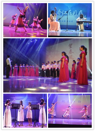 星海艺术团下属各团纷纷表演了精彩的节目。合唱团以优美的声音演绎了《 I will follow him 》、《望春风》两首歌曲,为此次的晚会拉开序幕,团内 Glee 组合献上无伴奏合唱《爱我别走》。舞蹈团献上了极具民族特色的舞蹈《古丽》和古典舞《朝花夕拾》;相声社带来的自创作品《学电台》获得了观众热烈掌声;话剧社表演的话剧《最终流放》让大家从戏剧中品味人生的哲理;礼仪队表演的 T 台 show 展示了大学生青春靓丽的精神面貌;管乐团带来的器乐演奏《神秘园之歌》、《春江花月夜》给大家带来了别样的音乐感受,最后在管乐团演奏的《北京喜讯到边寨》中,此次迎新晚会画上圆满的句点。