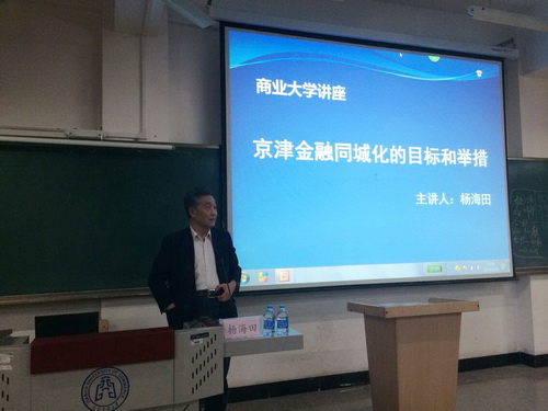 10 月 15 日下午,租赁学院邀请天津市租赁业协会会长杨海田教授为学院融资租赁本科生、研究生作了题为“京津金融同城化的目标与举措”的学术报告;本次报告会作为融资租赁学术前沿系列讲座之一,为系列专题讲座做了很好开端。报告会由租赁学院常务副院长王树春教授主持。