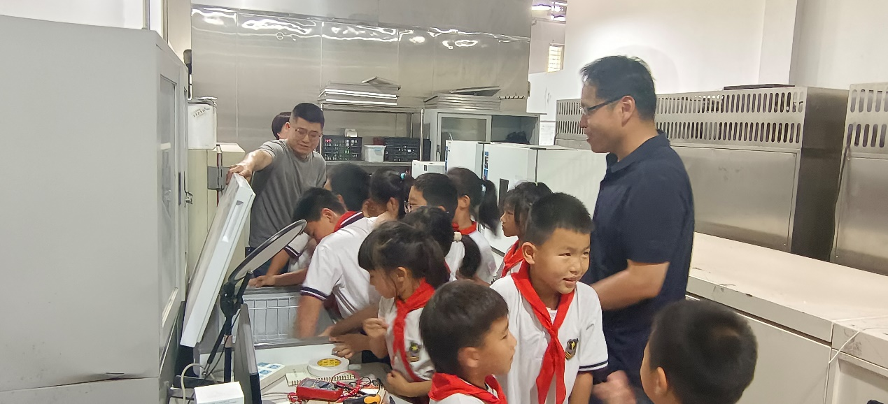 本次活动中,瑞景小学的师生们来到机械工程学院实验室,体验冰温库、冷柜和超低温冷柜,通过真实的“冷”激发学生对于制冷科学的“热”情。制冷系的老师带领学生了解冰箱和冷库的工作原理,讲解了制冷在食品冷藏和日常中的重要性。小学生们热情高涨,针对实验室设备的好奇点提出了很多有趣的问题,现场老师们逐一进行了讲解。